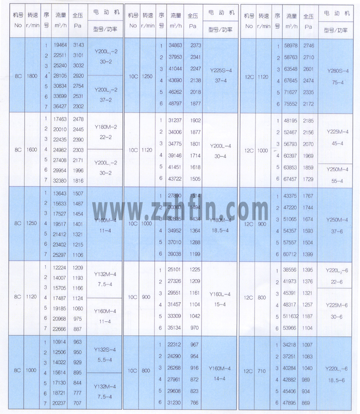 4-72-11系列離心通風(fēng)機(jī)性能參數(shù)表
