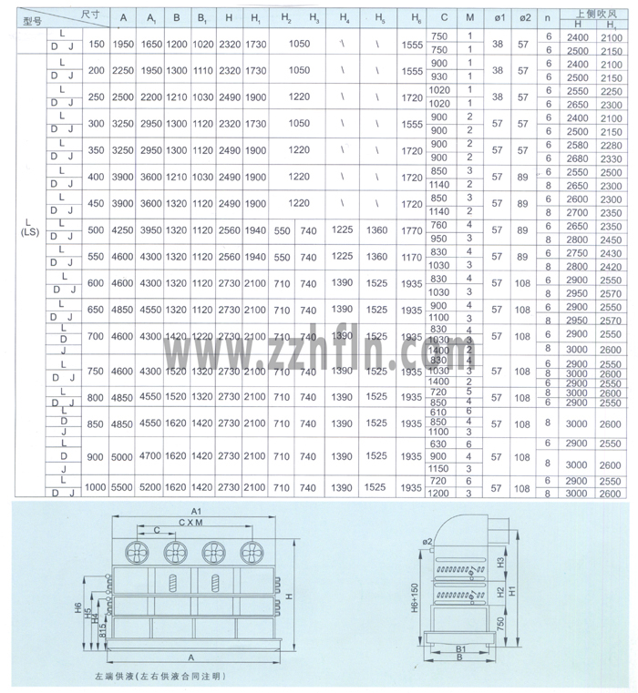 GTL落地下側(cè)吹風(fēng)式冷風(fēng)機尺寸表性能參數(shù)表