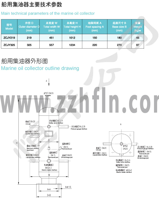 船用集油器用于收集各種容器中的冷凍機(jī)油,然后集中排放。產(chǎn)品有ZCJY219、ZCJY325兩種規(guī)格。